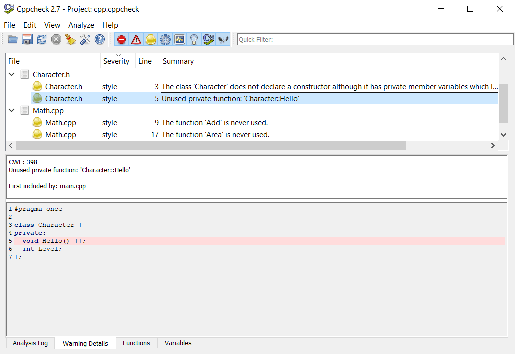 However, standalone tools are also available that tend to be much more thorough. A popular free option is Cppcheck